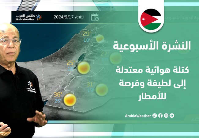 الأردن - النشرة الأسبوعية | الأحوال الجوية المتوقعة خلال أيام هذا الأسبوع وتفاصيل الأمطار المتوقع هطولها!
