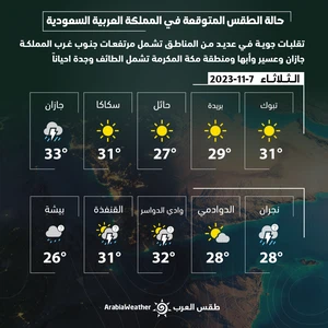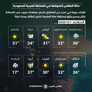 السعودية: الثلاثاء 7-11-2023 | حالة الطقس في عديد من المدن وأمطار تشمل بعض المناطق اليوم