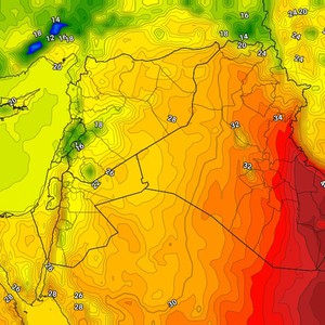 طقس العرب - قال المُتنبئون الجويون في مركز طقس العرب الإقليمي بأن الخرائط الجوية تُشير مُخرجات النماذج العددية الحاسوبية تُشير إلى ازدياد تأثر جنوب العراق بكُتلة هوائية حارة وتكون درجات الحرارة في مستويات أربعينية تلك المناطق، بينما تميل درجات الحرارة للانخفاض غرباً ويكون الطقس معتدلاً.