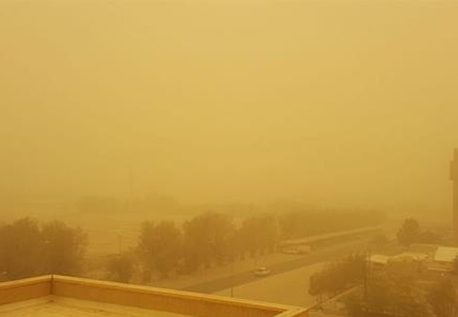 ونظراً لتمركز مُنخفض جوي حراري جنوب العراق تُهُب على الكويت رياح جنوبية غربية إلى جنوبية شرقية مُعتدلة السرعة تصحبها هبات نشطة إلى قوية تلامس ال50كم/ساعة وتعمل على إثارة الأتربة في المناطق المكشوفة وبخاصة شمال وغرب الكويت مما قد يتسبب بحدوث تدني على مدى الرؤية الأفقية على فترات.