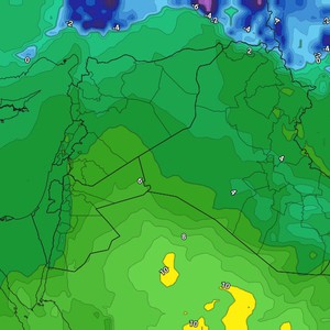 طقس العرب - تشير آخر مُخرجات النماذج الجوية العددية المُعالجة لدى قسم العمليات الجوية في مركز طقس العرب الإقليمي إلى بقاء درجات الحرارة حول لاقل من مُعدلاتها لمثل هذا الوقت من العام مُعظم ايام الأسبوع، حيث يكون الطقس شديد البرودة في الجبال الشمالية، بارداً نسبياً في بقية المناطق مع إنتشار السُحب على ارتفاعات مختلفة في النصف الثاني من الأسبوع.