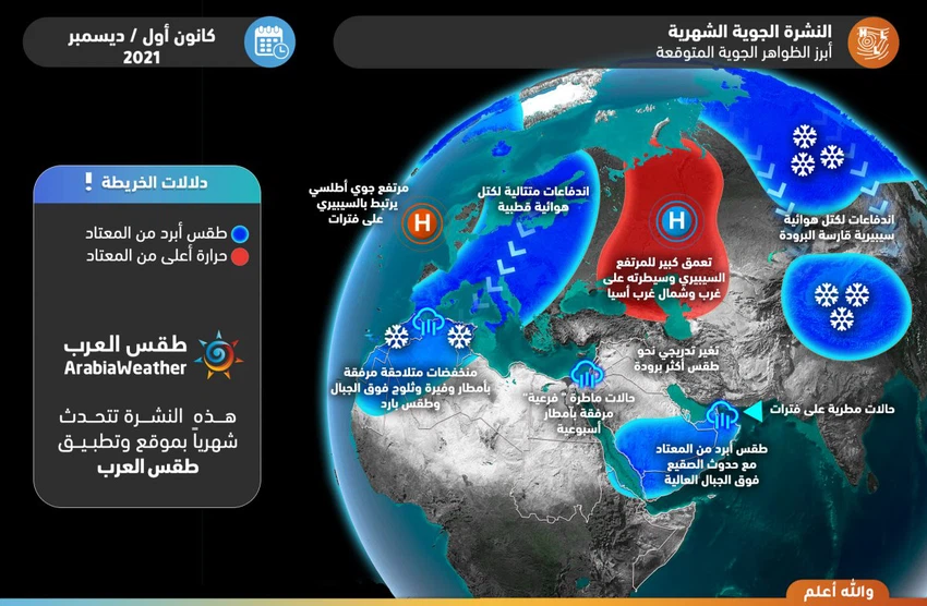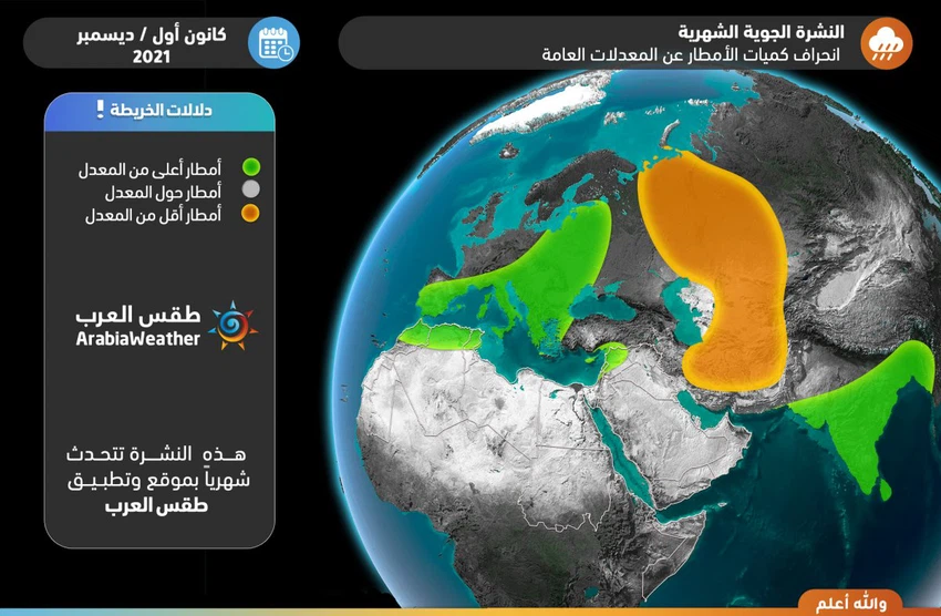 كانون أول/ديسمبر 2021: استمرار ضُعف الحالات الجوية و تغيير إيجابي مُرتقب مع نهاية الشهر