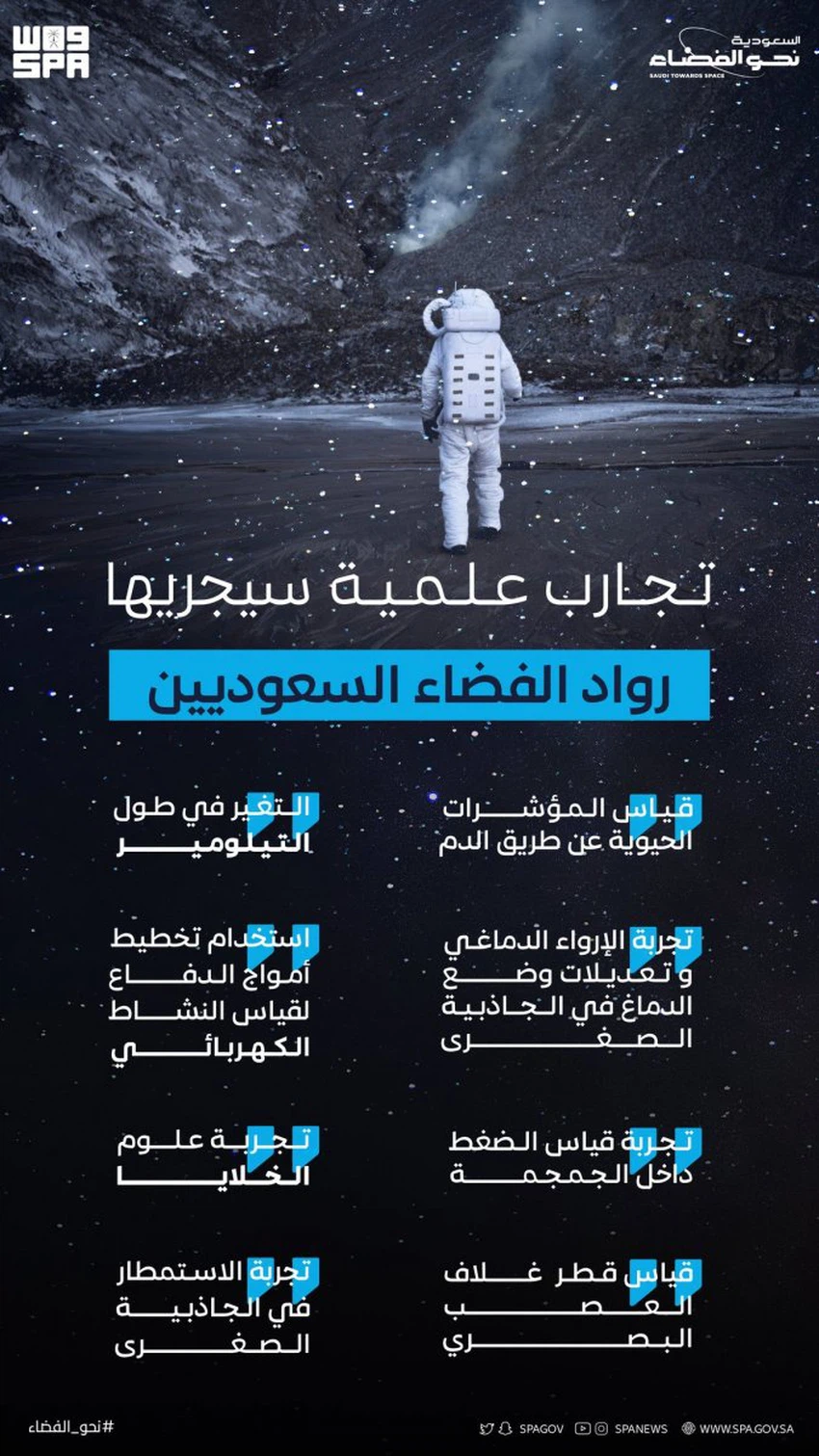 طقس العرب - تجارب علمية هامة سيجريها رواد الفضاء السعوديين في رحلتهم نحو الفضاء سيعود نفعها على البشرية جمعاء، مثل: