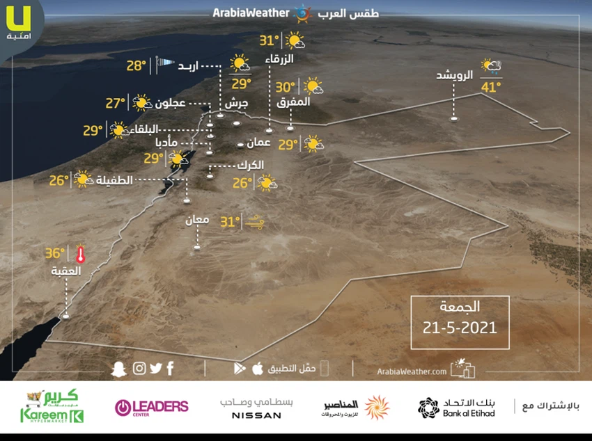 حالة الطقس ودرجات الحرارة المتوقعة في الأردن يوم الجمعة 21-5-2021