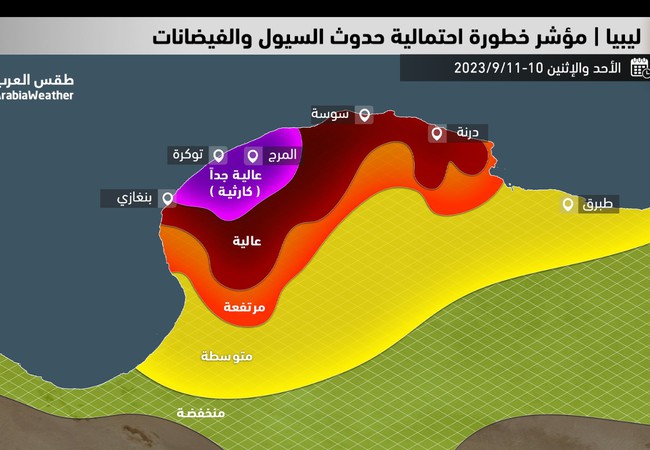 أصدر مركز طقس العرب الإقليمي من بعد ظهر السبت الموافق 9-9-2023 تقرير خاص حول الحالة الجوية شبه الاستوائية و المُتواجدة في وسط البحر الأبيض المُتوسط قُبالة السواحل الليبية.