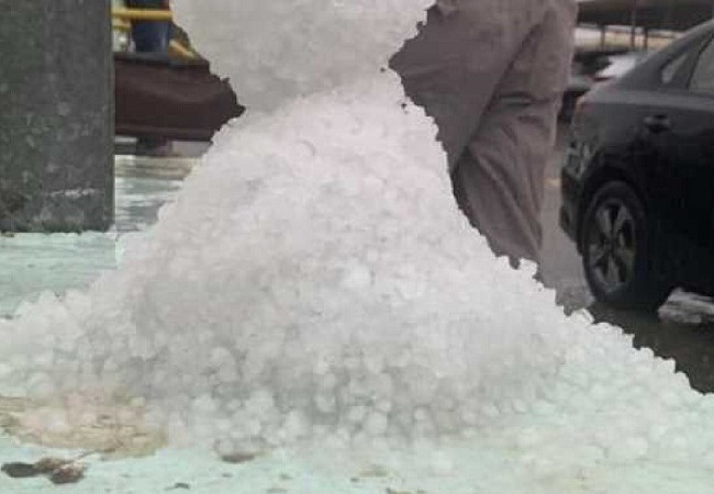 تساقط كثيف وتاريخي للبرَد في الكويت