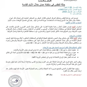 طقس العرب - سنان خلف - أصدرت الهيئة العامة للأرصاد الجوية في سلطنة عُمان التقرير رقم 1 حول تفاصيل تأثر السلطنة بسلسلة منخفضات جوية قادمة من الهند خلال الأيام القادمة، وفيما يلي نص التقرير: