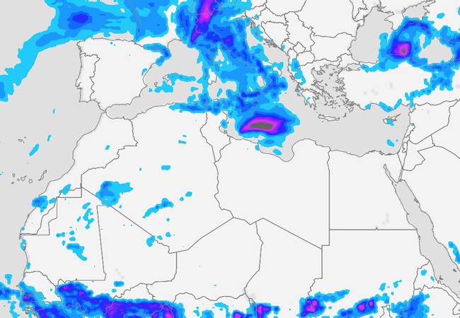 هام - البحر المتوسط | حالة ماطرة قوية تتشكل نهار يوم غد الاثنين قبالة سواحل ليبيا فهل تتطور إلى عاصفة متوسطية لاحقاً؟