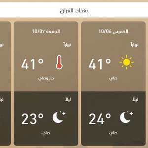 وفي التفاصيل، يُتوقع أن يكون الطقس يوم الخميس وخلال عُطلة نهاية الأسبوع في العراق صحواً بوجهٍ عام و حاراً و جافاً في أغلب المناطق، يتحول مع ساعات الظهيرة والعصير إلى شديد الحرارة وتبلغ حينها العظمى في أغلب المناطق الرئيسية بما في ذلك بغداد بداية الأربعينيات مئوية، وتكون الرياح مُتقلبة الاتجاه وخفيفة السرعة إلى مُعتدلة السرعة في أغلب المناطق بينما تكون الأجواء حارة نسبياً ليلاً في أغلب المناطق.