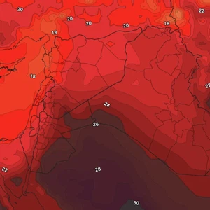 أما عن ساعات الليل فيُتوقع أن ترتفع درجات الحرارة الصغرى بشكل ملموس مقارنة بما كانت عليه خلال الليالي الماضية، وتتحول الأجواء لتصبح لطيفة إلى معتدلة بوجه عام في مختلف المناطق، لكنها تميل للحرارة في ساعات الليل الأولى في الأغوار والبحر الميت والعقبة.