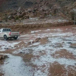 بالصور: بردية قوية جنوب الطائف تحول الأرض الى اللون الأبيض