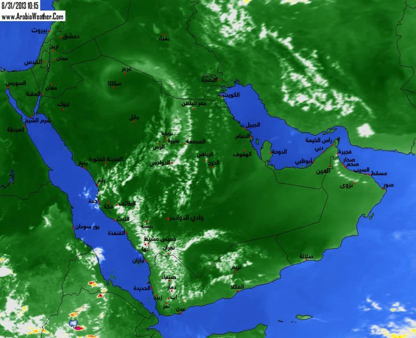 موقع ArabiaWeather.com - شهدت أجواء المناطق الشمالية من السعودية و الجنوبية من العراق نهار السبت 31-8-2013 الموافق لـ 24/10/1434 هـ تشكُلاً لمُنخفض جوي حراري غير اعتيادي لمثل هذا الوقت من العام ، عمل على دوران الرياح بقوة حول مركزه ، مما عمل على تشكُل عواصف رملية قوية عملت على تدني الرؤية الأفقية في مدينة رفحاء السعودية ، و مناطق واسعة من المناطق العراقية الجنوبية المُحاذية للحدود مع السعودية.