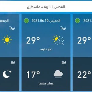 • درجة الحرارة العظمى المتوقعة في القدس الشريف: °29