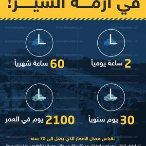 و بافتراض أن مُعدل الأعمار يصل إلى 70 سنة ، فإن مُعدل ما يقضيه السائق من عمره في الازدحام المروري قد يصل إلى ما بين الـ5 و الـ6 سنوات في حياته.