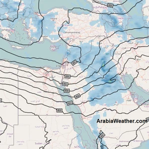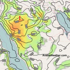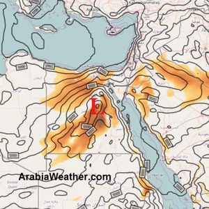وتظهر الخريطة المرفقة تمركز المنخفض الجوي المتوقع نهار يوم السبت