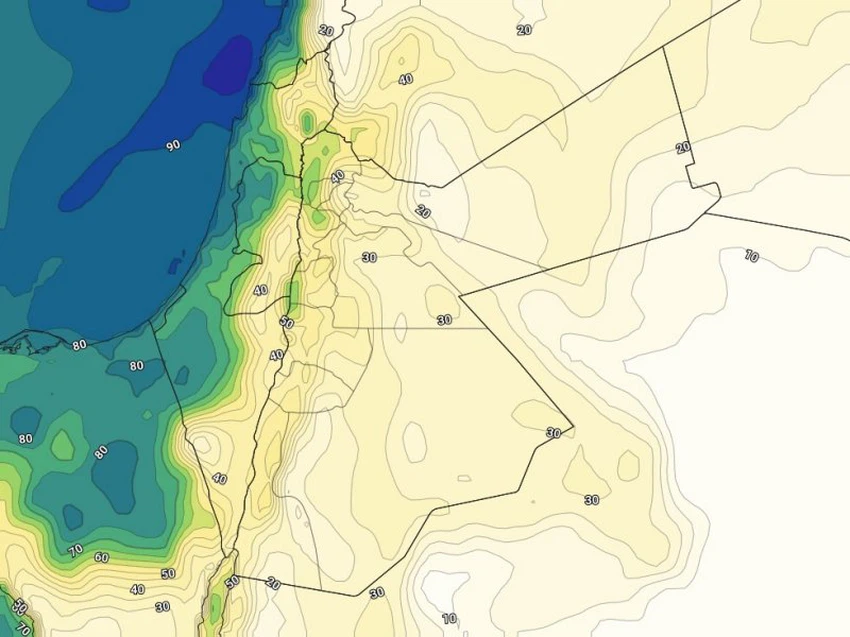 تترافق الموجة الحارة بتدفق رطوبة عبر طبقات الجو المُتوسطة والعالية، بحيث تنشأ على إثرها حالة محدودة من عدم الاستقرار الجوي يومي الخميس والجمعة، وتوجد إحتمالية ضعيفة لهطول زخات محلية من الأمطار ذات طابع عشوائي تتركز في مناطق البادية الجنوبية والشرقية.
