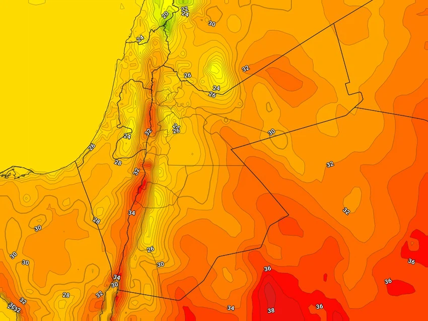 طقس العرب - يُتوقع بمشيئة الله أن تتأثر المملكة بكتلة هوائية بحرية مُعتدلة الحرارة، لذا يطرأ انخفاض ملموس على درجات الحرارة يوم الاثنين لتكون أقل من مُعدلاتها لمثل هذا الوقت من العام، ويكون الطقس صيفياً مُعتدلاً خلال ساعات الظهيرة والعصر في المرتفعات الجبلية والمناطق الغربية، بينما يكون حاراً نسبياً في شرق المملكة ومناطق الأغوار والبحر الميت ومدينة العقبة، تزامناً مع ظهور كميات من الغيوم المُنخفضة، وتوجد إحتمالية لهطول زخات محلية من الأمطار لفترة مؤقتة في اجزاء من المناطق الشمالية والوسطى الغربية من المملكة.