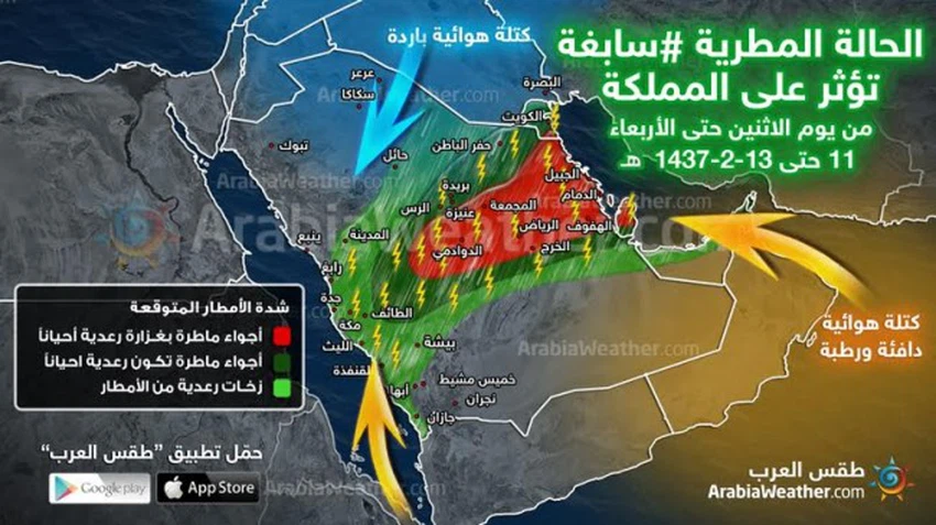 حمل التطبيق لتصلك تنبيهات الطقس أولاً بأول