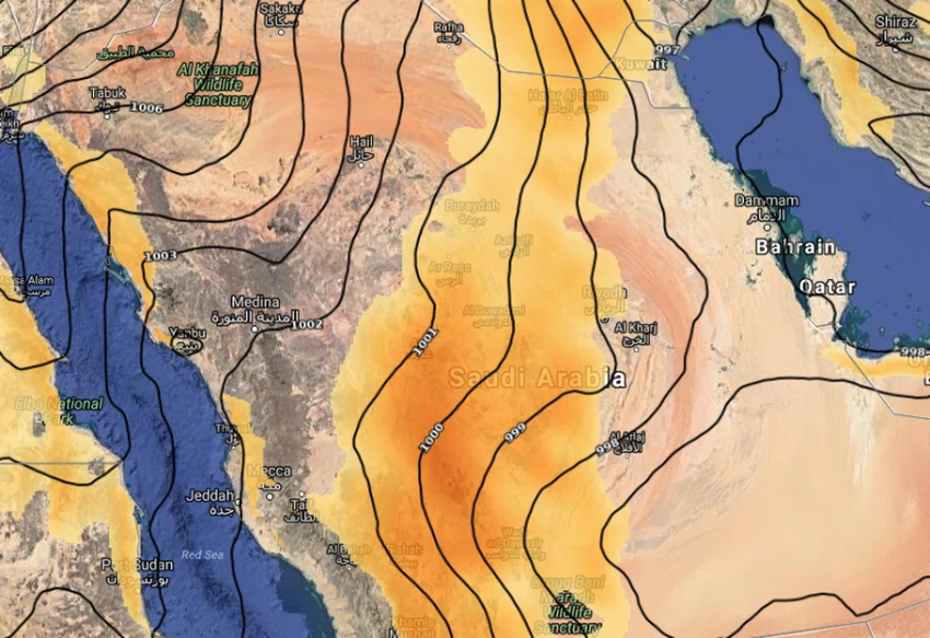 موقع طقس العرب – م. ناصر حداد - يتوقع أن تهب من جديد مع ساعات النهار والعصر من يوم السبت 29 يوليو / تموز، رياح شمالية شرقية نشطة السرعة على الدوادمي اضافة الى عفيف وتمتد لتصل الأجزاء الشرقية من عسير والباحة مثل رنية والبيشة وتثليث.