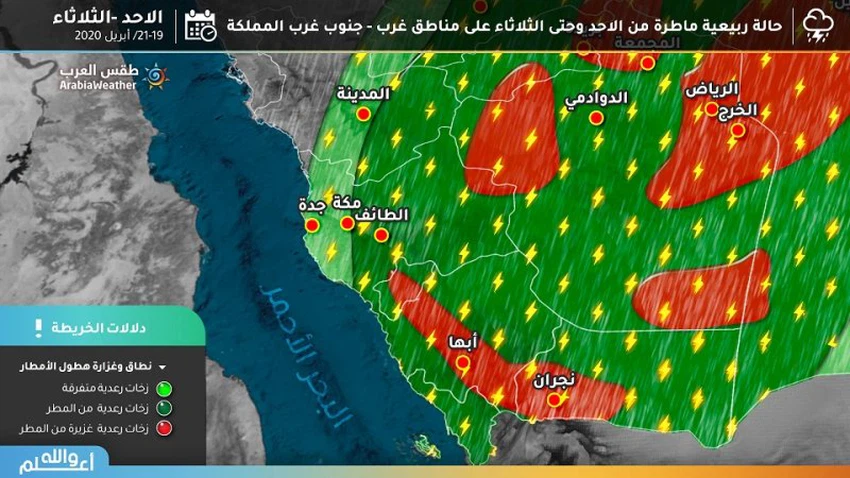طقس العرب - سنان خلف - من المُتوقع بمشيئة الله أن تكون كُل من الطائف ومنطقة مكة المكرمة بما في ذلك المشاعر المقدسة تحت التأثير المباشر للحالة الماطرة المُتوقع تأثيرها على المملكة يومي الأحد والإثنين بمشيئة الله تعالى.