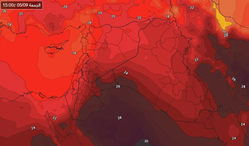 أما يوم الجمعة فيزداد تأثر المملكة بالكتلة الهوائية الحرارة نسبياً، بحيث يطرأ المزيد من الارتفاع على درجات الحرارة في مختلف المناطق لتصبح أعلى من معدلاتها المعتادة نسبة لمثل هذا الوقت من العام بحدود 9-11 درجة مئوية، ويُتوقع أن تكون درجات الحرارة العظمى في العاصمة عمّان يوم الجمعة ما بين 33 - 36 درجة مئوية، بينما تكون حول الـ 40 أو أعلى بقليل في الأغوار والبحر الميت والعقبة.