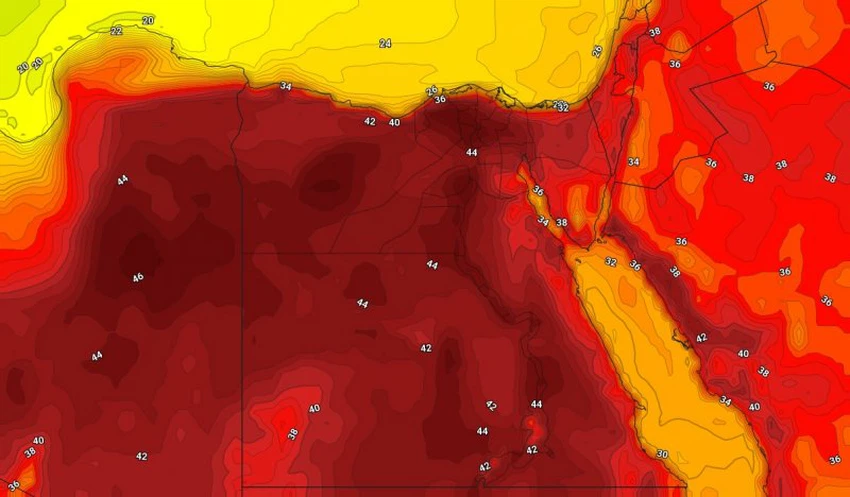 ثم يستمر الارتفاع بدرجات الحرارة يوم الاربعاء القادم وتشتد الاجواء الحارة إلى شديدة الحرارة يوم الخميس القادم لتتعدى درجات الحرارة حاجز 42-44 درجة مئوية خاصة على القاهرة والدلتا وعلى صعيد مصر، حيثُ يكون الطقس المُتوقع حينها طقس حار نسبي إلى حار على السواحل الشمالية بينما يكون حار إلى شديد الحرارة على باقي المناطق، وتنخفض درجات الحرارة بشكل لافت يوم الجمعة القادم على غرب وشمال غرب البلاد وصولاً إلى محافظات مطروح والاسكندرية والمحافظات الغربية والشمالية للدلتا مع بقاء واستمرار الأجواء الحارة إلى شديدة الحرارة على جنوب وشرق الدلتا وعلى محافظات القاهرة والشرقية والصعيد وجنوب مصر وعلى سيناء والله أعلم.