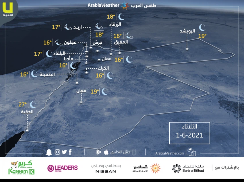 طقس العرب - تعود درجات الحرارة للانخفاض مجدداً لتصبح حول معدلاتها لمثل هذا الوقت من العام، بحيث يكون الطقس صيفي اعتيادي في عموم المناطق.