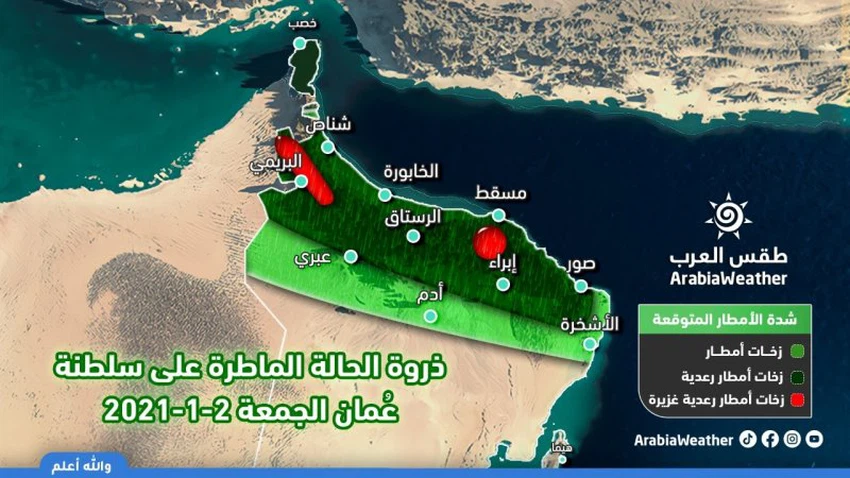 إذا كُنتم تتصفحون من الهاتف فيُمكنكم تحميل تطبيق طقس العرب الذي يوفر توقعات دقيقة للطقس لالاف المناطق في السلطنة، إضغط هنا.