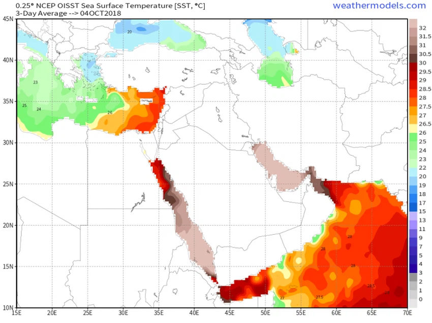 درجة حرارة سطح مياة بحر العرب مرتفعة