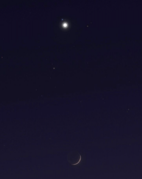 أوضح رئيس الجمعية، المهندس ماجد أبو زاهرة، أن القمر في مرحلة الهلال الصغير وكوكب الزهرة سيظهران معًا بعد غروب الشمس بوقت قصير، وذلك قبل أن يحل ظلام الليل. وذكر أن الزهرة والقمر يحتلان المركزين الثاني والثالث من حيث السطوع بعد الشمس، ما يجعلهما يظهران بتوهج جميل، حيث يمكن رؤية توهج خافت على الجزء المظلم من القمر، ناتج عن انعكاس ضوء الشمس عن سطح الأرض.