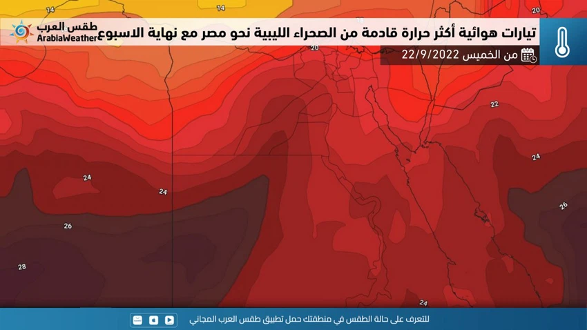 تندفع كتلة هوائية أقل حرارة نحو شمال ليبيا يومي الخميس والجمعة مما يتسبب بدفع كتلة هوائية أكثر حرارة من الصحراء الليبية نحو الاراضي المصرية وتتوغل اكثر نحو المناطق الشمالية من الجمهورية مما يتسبب بحدوث ارتفاع واضح لكنه مؤقت على درجات الحرارة ويصبح الطقس حاراً في المناطق الشمالية لكنه شديد الحرارة في المناطق الجنوبية وتصل الحرارة الى منتصف الثلاثينياتو مئوية شمالاً بمافي ذلك العاصمة القاهرة.