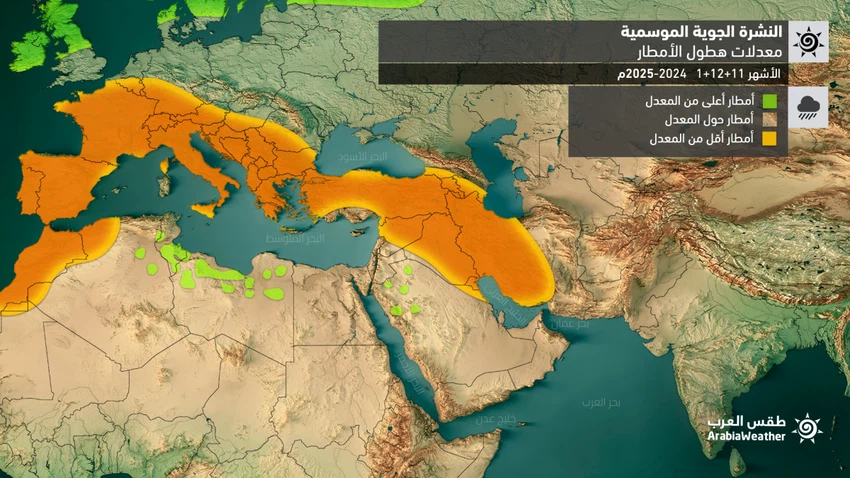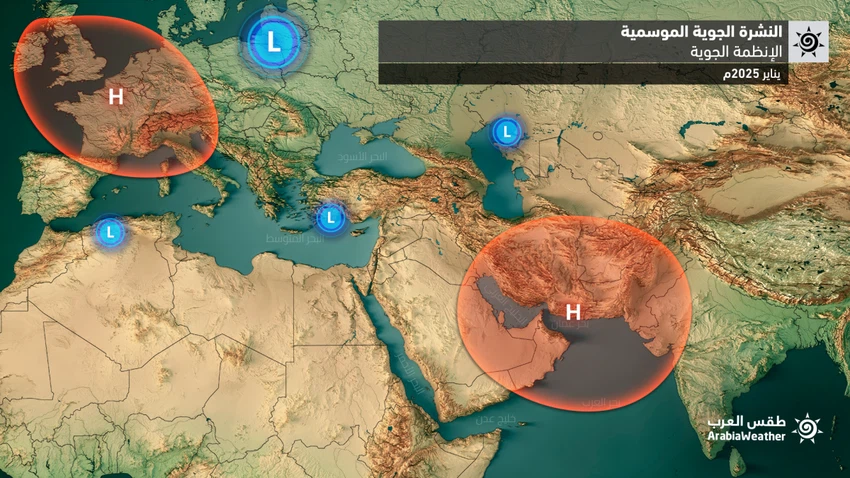 2. يتوقع أن تتحسن الظروف الجوية خلال شهر يناير مع تعمق المنفضات الجوية وحيط الحوض الشرقي للمتوسط.