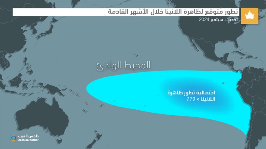 هذا الأمر، يتزامن مع ما تُشير إليه العديد من المراكز العالمية من ضمنها NOAA و التي باتت تُشير إلى تطور مُحتمل لظاهرة اللانينا خلال الخريف القادم بنسبة تتجاوز 70% و التي تعني انخفاض و تبريد دوري في درجة حرارة سطح البحر في الأجزاء الشرقية و الوسطى من المنطقة الاستوائية للمحيط الهادئ، هذه الظاهرة أيضاً ترتبط ارشيفياً بزيادة احتمالية حدوث ضعف في نشاط الدوامة القطبية خلال الموسم المطري.