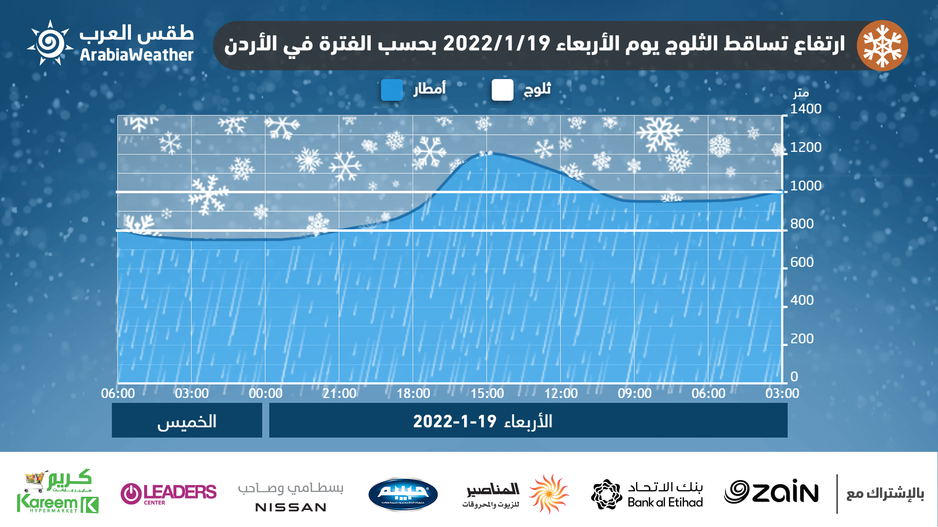 و قُبيل حلول المساء، يُتوقع بدء تساقط الثلوج أيضاً و تراكمها فوق جبال محافظة الطفيلة العالية.
