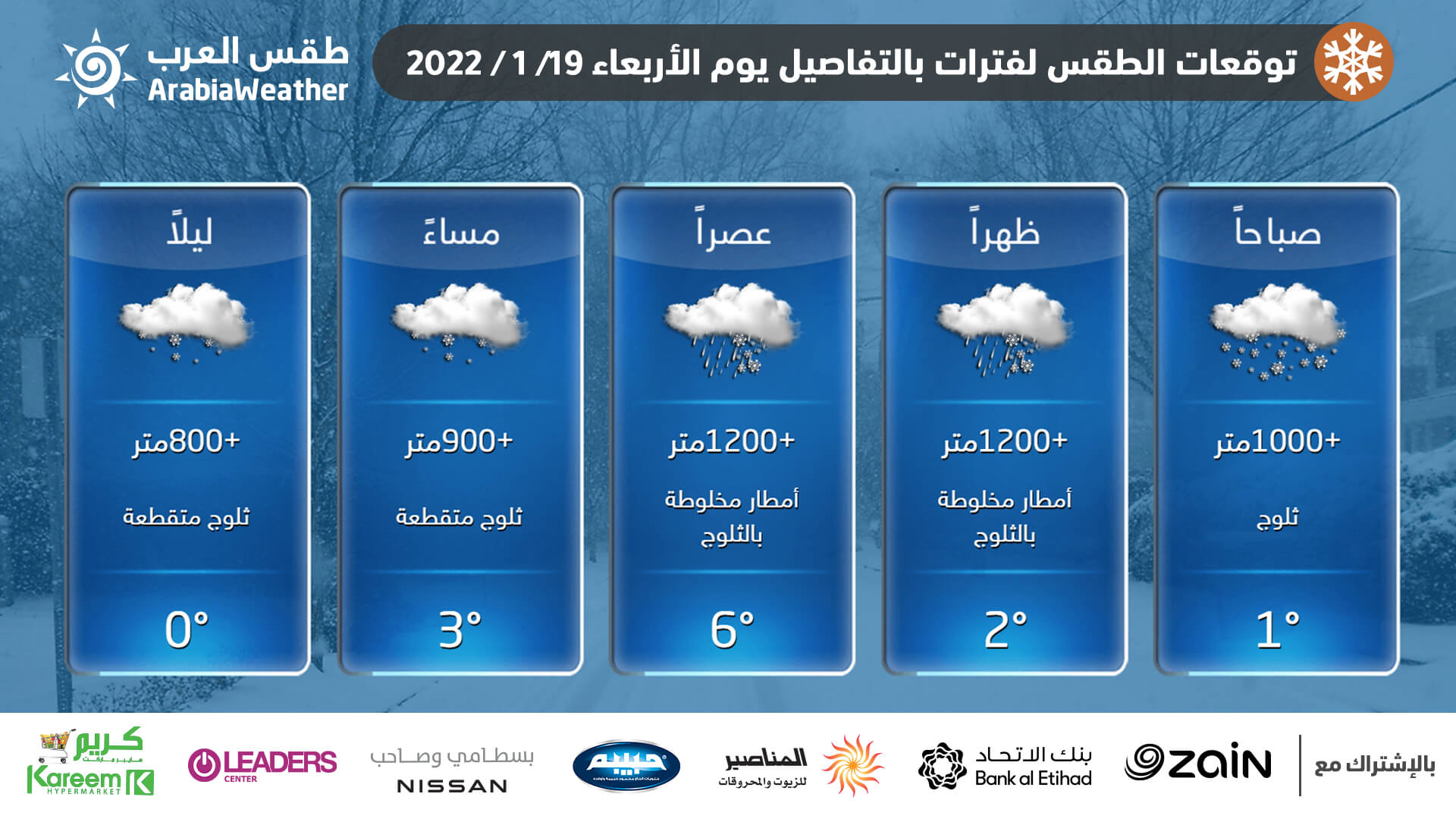 وسيقوم مركز طقس العرب بإعلامكم بالمزيد من التفاصيل والتطورات حول فرص تساقط الثلوج والأماكن المُعرضة لذلك.