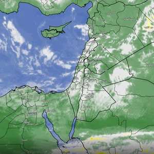 طقس العرب - تشير آخر صور الأقمار الاصطناعية في مركز طقس العرب إلى تمركز المُنخفض الجوي المُصنف من الدرجة الرابعة إلى شمال شرق جزيرة قبرص هذه الأثناء، ومرافق مع جبهة هوائية باردة عبرت فلسطين وبدأت بالعبور التدريجي والبطيء لشمال المملكة.