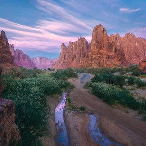 الطريق من مدينة العلا وحتى ضواحي المدينة