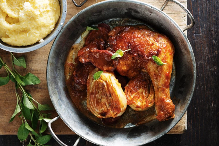 الدجاج المطهو ببطء مع الطماطم والشمر