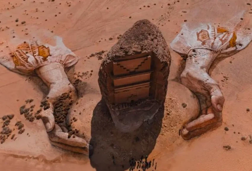 طقس العرب - اختار الفنان الأميركي ديفيد بوبا أحد المواقع الأثرية في مدينة الحجر بالعلا ليقدم عملاً فنياً رائعاً، يظهر فيه شكلًا مذهلاً ليدين حاميتين، وذلك كجزء من حملة سعودية تهدف إلى حماية التراث الحضاري في المنطقة، ونشرت الهيئة الملكية لمحافظة العلا معلومات حول هذه اللوحة الفنية المميزة.