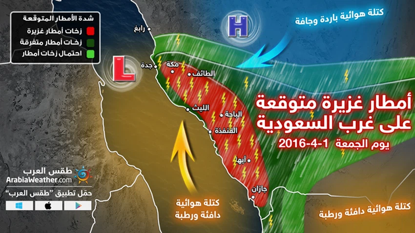 موقع ArabiaWeather.com – م. ناصر حداد – تتأثر مناطق جنوب غرب البلاد بالحالة الجوية الماطرة اليوم الخميس، حيث يتوقع اشتداد الفعالية الجوية يوم غد الجمعة والتي تشمل مكة المكرمة والباحة والطائف وجازان ومدينة جدة على شكل رياح قوية وغبار وزخات متفرقة من المطر بإذن الله.