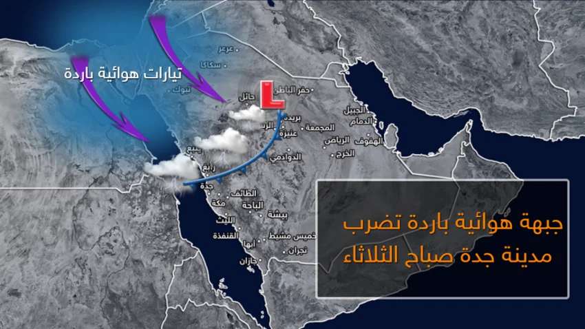 تعبر الجبهة الباردة مع ساعات الصباح الباكر، وتؤدي الى تكاثر سحب المزن الركامي فوق سواحل جدة وما حولها بحيث تصبح الأمطار ذات طابع رعدي وغزير، كما يتشكل قطار من العواصف الرعدية على جدة، وهذا الأمر يؤدي الى نشاط كبير في حركة الرياح السطحية.