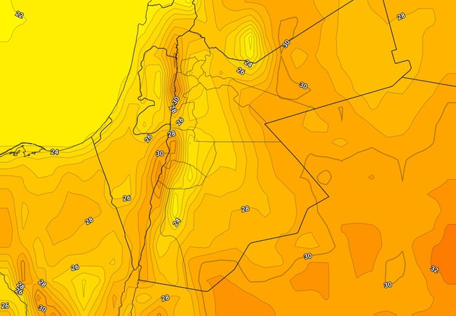 The same forecasts indicate that temperatures will continue to rise during the Eid al-Adha holiday, with normal summer weather prevailing throughout the region, while it will be hot in the Jordan Valley, the Dead Sea, and Aqaba.