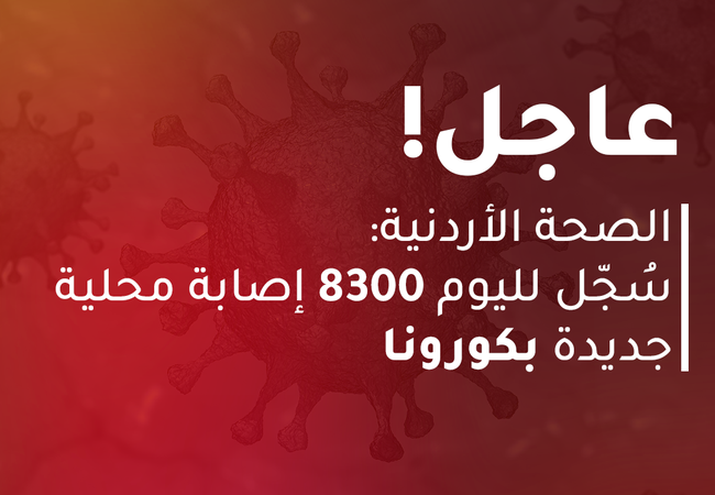 <p style=";text-align:left;direction:ltr">Arab Weather - (8300) cases of the new Corona virus were recorded, and they were distributed as follows:</p><p style=";text-align:left;direction:ltr"> - (4289) in the governorate of the capital, Amman.</p><p style=";text-align:left;direction:ltr"> - (999) are in Irbid Governorate, of which (69) are in Ramtha.</p><p style=";text-align:left;direction:ltr"> - (958) in Zarqa Governorate.</p><p style=";text-align:left;direction:ltr"> - (571) in Al-Balqa Governorate.</p><p style=";text-align:left;direction:ltr"> - (328) in Karak Governorate.</p><p style=";text-align:left;direction:ltr"> - (281) in Madaba governorate.</p><p style=";text-align:left;direction:ltr"> - (222) in the Aqaba governorate.</p><p style=";text-align:left;direction:ltr"> - (163) in Jerash Governorate.</p><p style=";text-align:left;direction:ltr"> - (155) in Mafraq governorate.</p><p style=";text-align:left;direction:ltr"> - (114) in the Ajloun governorate.</p><p style=";text-align:left;direction:ltr"> - (111) are in Ma'an Governorate, of which (11) are in Petra.</p><p style=";text-align:left;direction:ltr"> - (109) in Tafila governorate.</p><p style=";text-align:left;direction:ltr"> This brings the total number of cases in the Kingdom to (457,151) cases, while the number of currently active cases reaches (69,033) cases.</p><p style=";text-align:left;direction:ltr"> - (63) deaths were recorded, (may God have mercy on them all), bringing the total number of deaths to (5169) cases.</p><p style=";text-align:left;direction:ltr"> - The number of cases that have been admitted to hospitals today is (446) cases, while (299) cases have been discharged.</p><p style=";text-align:left;direction:ltr"> The total number of confirmed cases receiving treatment in hospitals is (2,431) cases.</p><p style=";text-align:left;direction:ltr"> - The total number of isolation beds used in hospitals for confirmed and suspected cases yesterday (1888), with an occupancy rate (36%), while the total number of ICU beds used in hospitals for confirmed and suspected cases yesterday (549), an occupancy rate (46%).</p><p style=";text-align:left;direction:ltr"> The total number of ventilators used in hospitals for confirmed and suspected cases yesterday (292), with an occupancy rate (27%).</p><p style=";text-align:left;direction:ltr"> - The number of recovery cases for this day in home isolation and hospitals reached (3644) cases, bringing the total cases of recovery to (382,949) cases.</p><p style=";text-align:left;direction:ltr"> (54,052) laboratory tests were performed, bringing the total number of examinations to (5,053,264), and thus the percentage of positive tests for this day is approximately (15.36%).</p><p style=";text-align:left;direction:ltr"> Other actions:</p><p style=";text-align:left;direction:ltr"> • The Ministry of Health calls on everyone to adhere to defense orders, and to follow preventive measures, especially wearing masks, not holding gatherings of more than (20) people, and following up on the awareness campaigns that it launched in partnership with a number of ministries and agencies to prevent Corona infection and register to take the vaccine: #Elk_Ofid # Our life - most important</p>