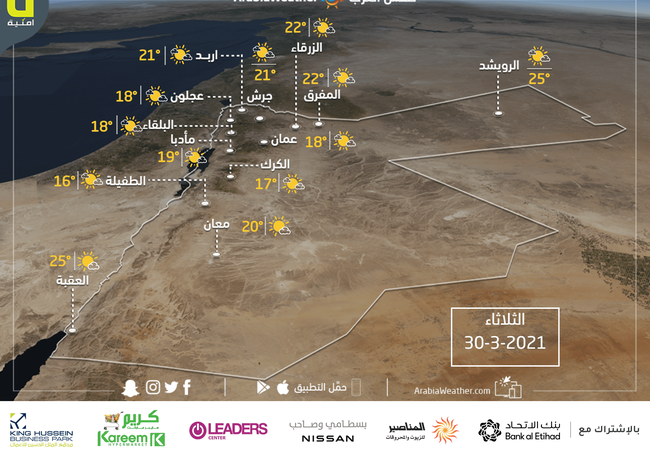 Weather conditions and expected temperatures in Jordan on Tuesday 30-3-2021