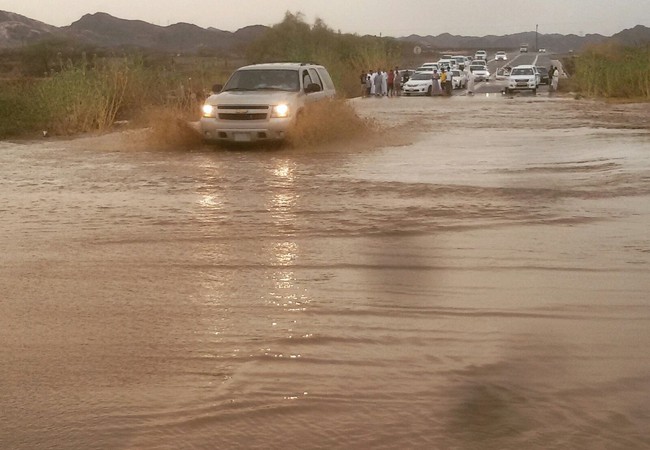سيول عقبة الهدا تحتجز المركبات وتغلق الطريق