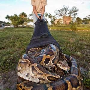 موقع ArabiaWeather.com- تمكن باحثون في ولاية فلوريدا الأمريكية، من الإمساك بثعبان البورمي العملاق في الحديقة الوطنية ايفرجليدز، والذي يعتبر ثاني أضخم حيوان تم اكتشافه في الولاية.