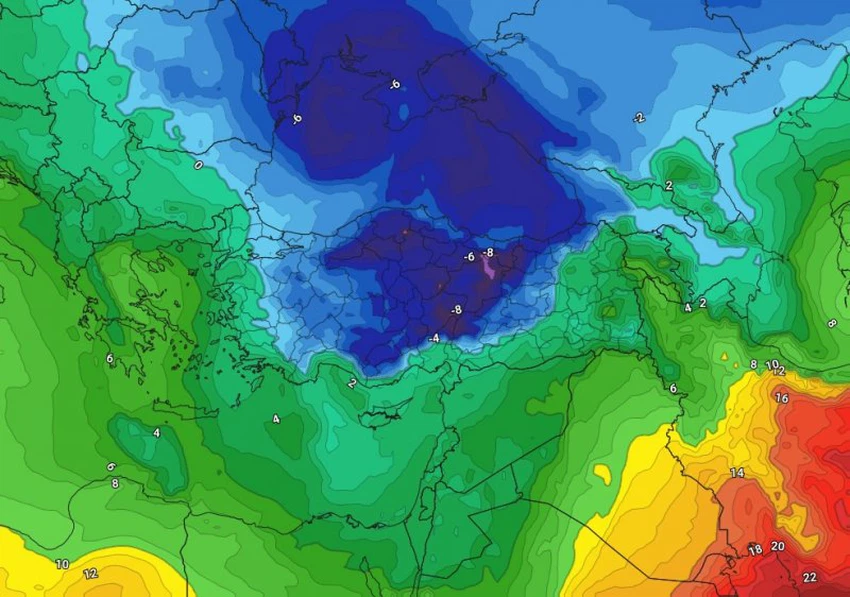 A very cold air mass of polar origin is located in eastern Europe, pushing its cold winds to the Levant.