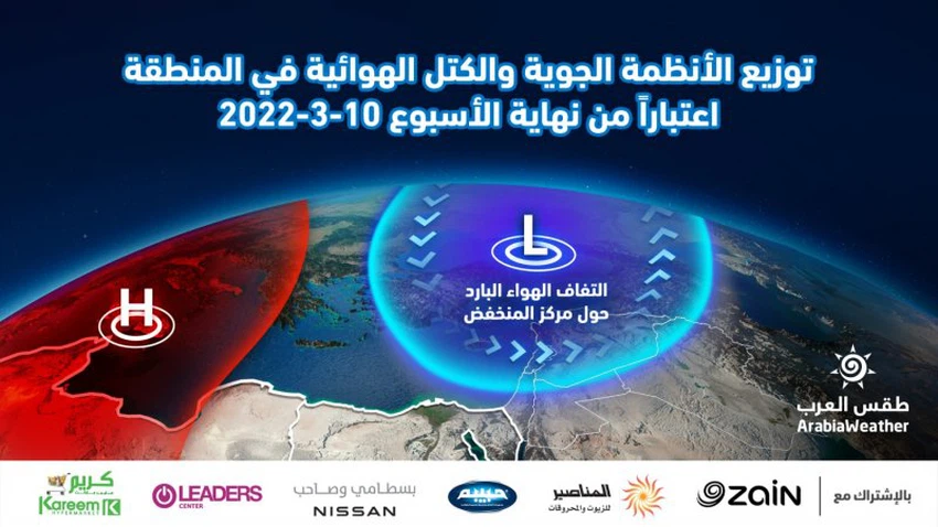 The same weather maps issued by the Arab Weather Center indicate that the rest of the countries of the eastern basin of the Mediterranean are on a date with air activity, which is affected by a series of very strong air masses, as of Thursday, March 10, accompanied by a significant drop in temperatures and a complete reversal of the atmosphere. , so that the temperatures fall dramatically compared to what they were in the past days, and the occurrence of large-scale frost and ice waves in all regions of the Levant, Egypt, Iraq and even northern Saudi Arabia.