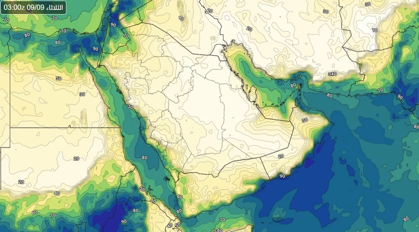 September is one of the months most affected by humidity in Jeddah and the Red Sea coast in general. This is because seawater has stored large amounts of thermal energy during the past summer months, leading to increased evaporation and a significant increase in atmospheric humidity levels.