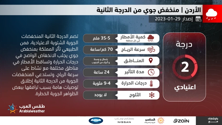 And gradually blowing during the day on Tuesday, westerly winds that increase in speed with the passage of time to be active to strong speed in the noon and afternoon hours, accompanied by severe gusts over the mountainous and open areas in the afternoon hours, the speed of gusts exceeding the barrier of 70 km / h, especially in the southern heights and open areas, which cause dust waves in the south and east of the Kingdom.